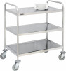 - Les chariots à plateaux : Que ce soit un chariot à deux plateaux ou un chariot hauts à quatre plateaux, les chariots en inox à plusieurs plateaux sont fréquemment utilisé dans les milieux de la restauration et de l'hôtellerie. Le chariot en inox CCI3 de la marque française Casselin est un chariot à trois plateaux fréquemment utilisé en hôtellerie et en restauration.
