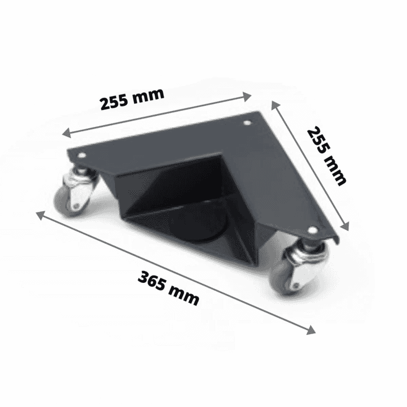 Chaque coin roulant est équipé de trois roues pivotantes à 360 degrés. Cette configuration mécanique est essentielle pour la manœuvrabilité. Elle permet de déplacer la charge latéralement, de la faire pivoter sur elle-même ou de la diriger avec finesse dans les couloirs étroits ou autour des obstacles. Les roues ont un diamètre de 50 mm avec une bande de roulement de 20 mm et sont fabriquées en caoutchouc. Ce matériau est privilégié pour plusieurs raisons : il offre une excellente adhérence sur différents types de sols (y compris les surfaces lisses ou en béton), il absorbe les petites irrégularités du sol, et il assure un roulement silencieux tout en protégeant les revêtements de sol contre les marques et les dommages.
